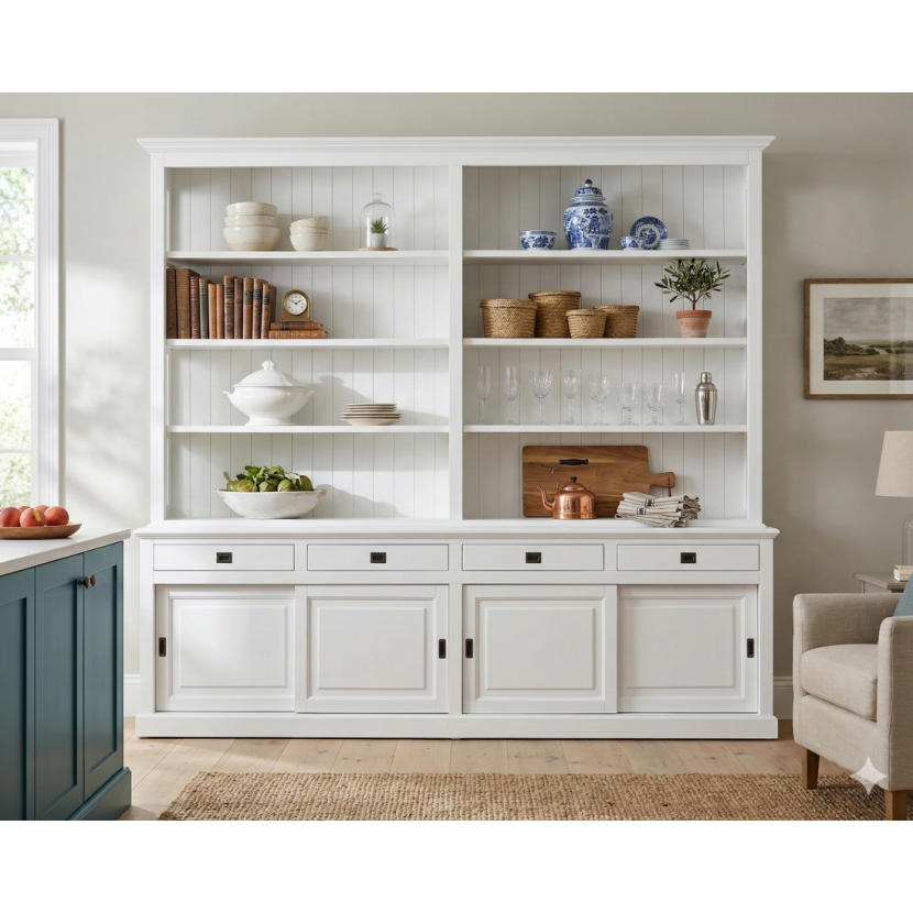Wprowadź do swojego wnętrza powiew świeżości i klasycznego szyku dzięki Bibliotece Rozalia. Ten imponujący mebel łączy w sobie funkcjonalność tradycyjnego kredensu z lekkością otwartego regału. Wykonana w ponadczasowej bieli, biblioteka stanowi idealne dopełnienie salonu, jadalni lub domowego gabinetu, nawiązując do przytulnego stylu prowansalskiego oraz luksusowego designu nadmorskich rezydencji.