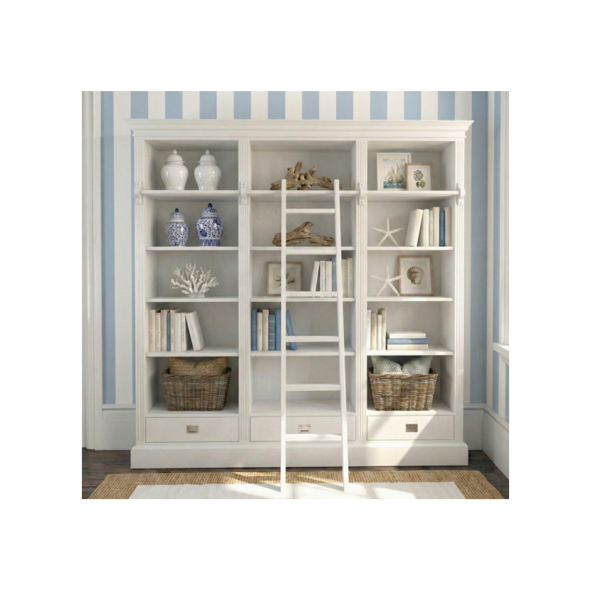 Najbardziej charakterystycznym elementem modelu Walkiria jest stylowa biała drabinka. Zamontowana na solidnym, poziomym relingu, pozwala na wygodny dostęp do najwyższych partii mebla, nadając mu jednocześnie autentyczny, biblioteczny sznyt. To detal, który sprawia, że mebel przestaje być zwykłym regałem, a staje się designerską perłą w Twoim domu.