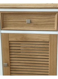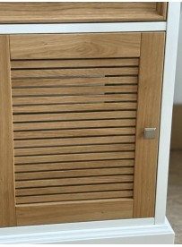 Wyjątkowy detal: Fronty żaluzjowe zapewniają cyrkulację powietrza wewnątrz szafek i nadają meblowi niepowtarzalny charakter.