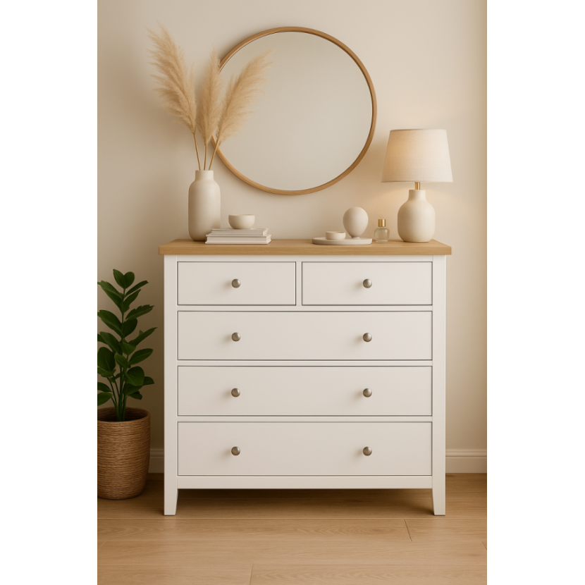 Biała Komoda Skandiline z 5 Szufladami – Styl i Optymalne Przechowywanie