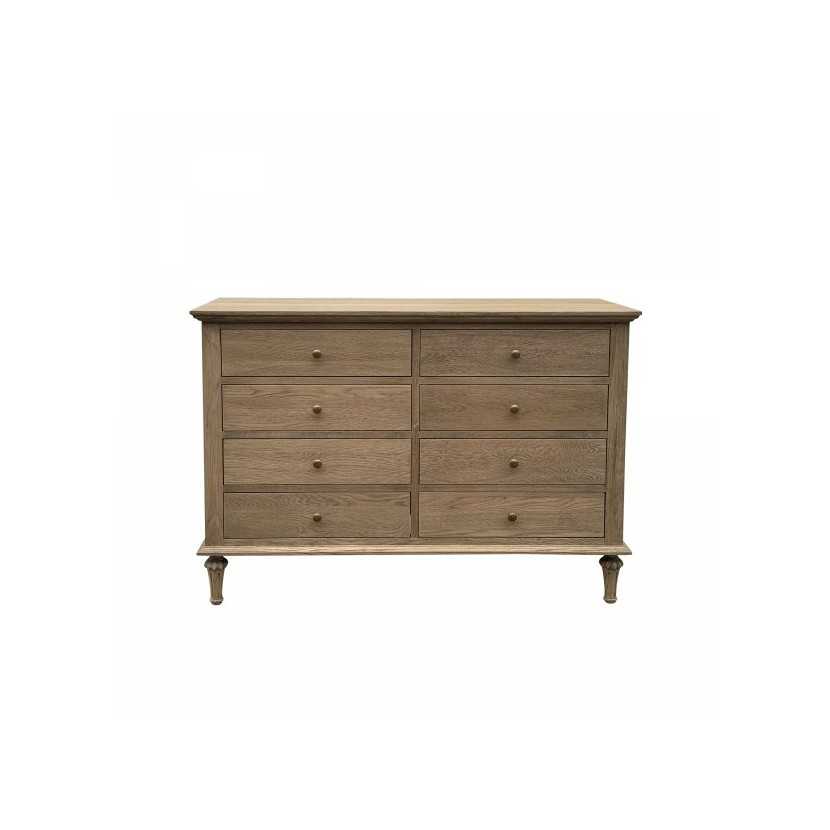 Piękna a zarazem bardzo praktyczna, wyposażona w 8 szuflad. Właściwości oraz walory drewna dębowego sprawiają, że ten model cieszy się wielką popularnością. Dzięki wypracowanym przez lata metodą obróbki w firmie ,,Meblarnia.com.pl'' nasi klienci otrzymują produkt ekologiczny, wysokiej jakości.