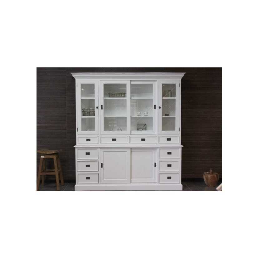 Dolna część składa się z komody. Na środku szafka, a po bokach trzy szuflady. Dwie części oddziela delikatny blat. Aby kredens był jeszcze ciekawszy, do witryny dodaliśmy jeszcze cztery szuflady. Kredens z licznymi szufladami pomaga zachować ład i porządek. W każdej chwili nieużywaną rzecz możemy po prostu schować do którejś z nich. Środek witryny otwierany jest przez drzwi przesuwne, a dwa boki mają standardowe drzwi. To właśnie dzięki takiemu połączeniu Tytus to kredens z pomysłem i z niezwykłym potencjałem. Możemy każdą część zagospodarować w inny sposób. Cały mebel zakańcza własnoręcznie rzeźbione zwieńczenie.
