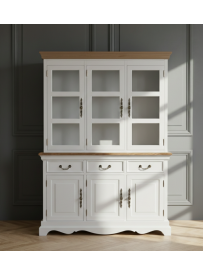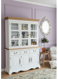 Może stać w salonie, może w jadalni - prowansalski kredens Vanil do każdego miejsca wniesie wiele dobrego. Od tego mebla emanuje przyjazna aura, a sam mebel pomimo swoich gabarytów sprawia wrażenie lekkiego, delikatnego. Ciepły odcień bieli połączony z drewnianym blatem oraz drewnianym wieńczeniem. Dzięki takim, z pozoru niewielkim zabiegom estetycznym, meble zyskują charakteru i wykwintności. Kredens do salonu Vanil ma w sobie jednak znacznie więcej. Spójrzmy na jej eleganckie, złote uchwyty na drzwiczkach oraz delikatne rzeźbienia. To wszystko przekłada się na jej ogólną prezencję. Mamy do czynienia z meblem zaprojektowanym z duchem czasu, jednak z zachowaniem pięknej, prowansalskiej formy.