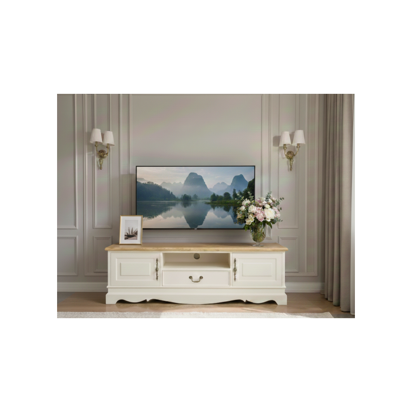 Biała szafka RTV w stylu prowansalskim Vanil 2D.1SZ.