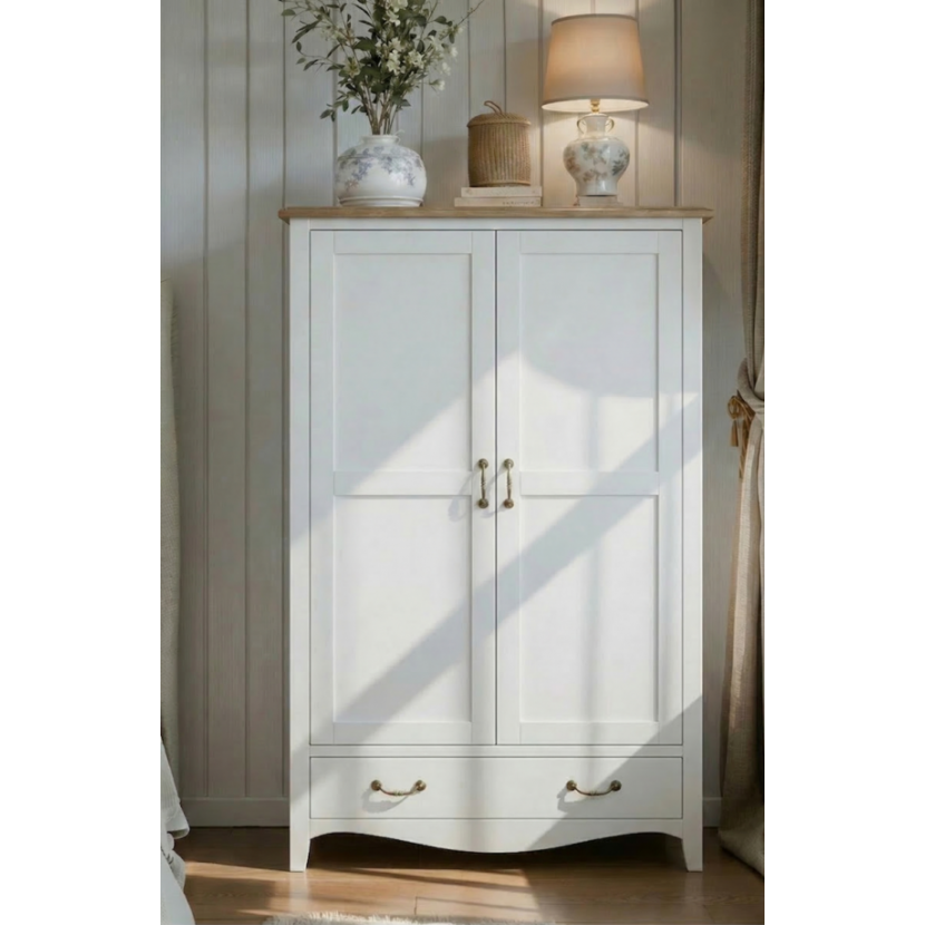 Szafa Klementyna to kwintesencja stylu prowansalskiego i rustykalnego, która wprowadzi do Twojej sypialni spokój, ład i wyjątkową estetykę. Wykonana z dbałością o detale, łączy w sobie solidność tradycyjnych mebli z lekką, odświeżającą formą bieli.